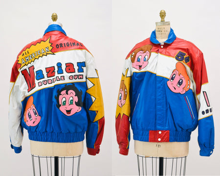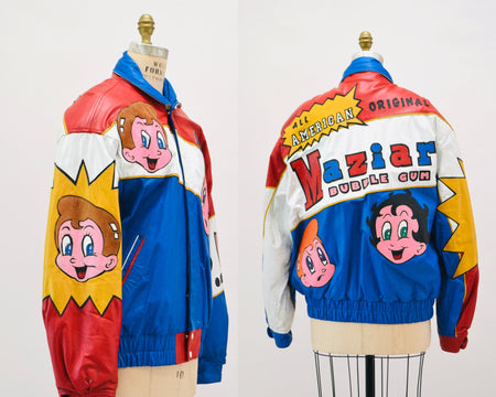 Quick Shop 80s 90s Vintage Bubble Gum Leather Jacket Comic Black White Maizar Medium Large// 80s USA Pop Art Leather Jacket Bubble Gum Candy Jacket $1,120.00 Quick Shop