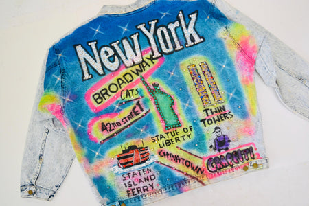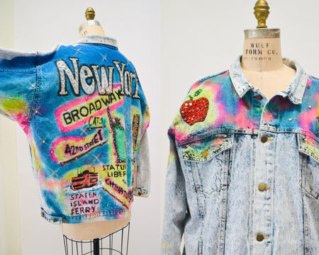 Quick Shop 80s 90s Vintage Denim Jacket New York City Painted Rhinestones Airbrushed JEAN Jacket Medium Large Tony Alamo Inspired Stone Acid Wash Denim $280.00 Quick Shop