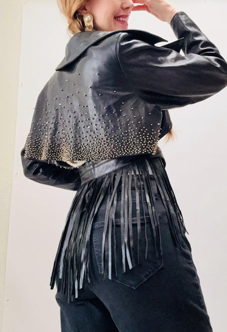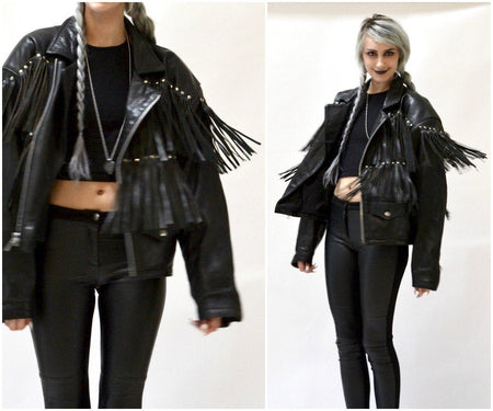 Quick Shop Vintage Black Leather Jacket with Fringe Size Medium Large// Vintage Black Leather Biker Jacket with Fringe size Large Motorcycle Jacket $255.00 Quick Shop