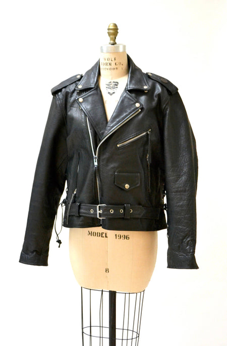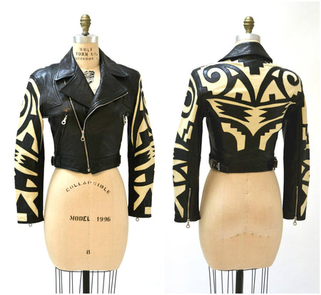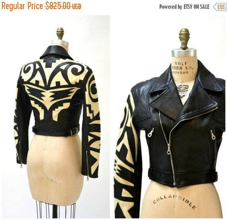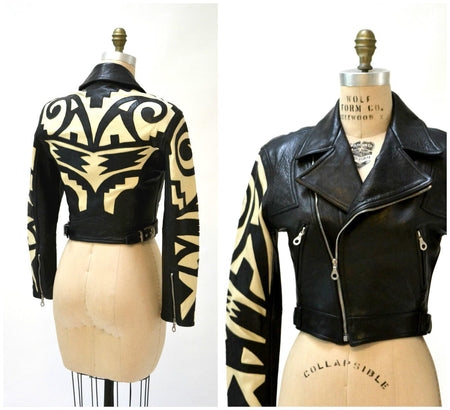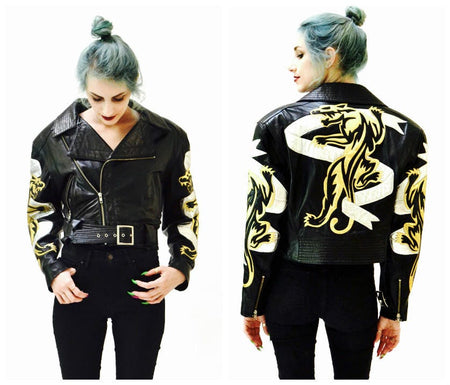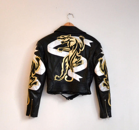 Quick Shop Vintage Black Leather Motorcycle Jacket by North Beach Michael Hoban Tiger// Vintage Black Metallic Leather biker Jacket Tiger Cat Large $1,000.00 Quick Shop
