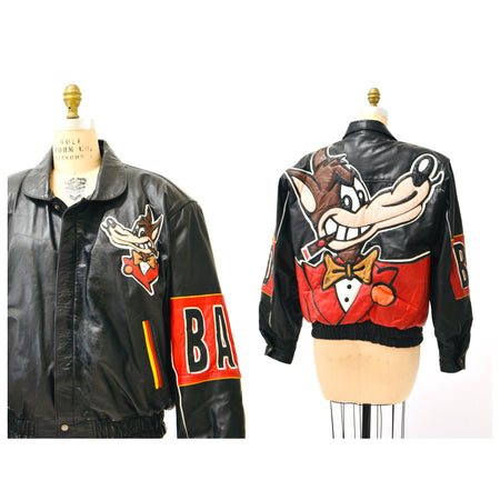 Quick Shop Vintage Black Leather Jacket with Big Bad Wolf Cartoon Comic Black Leather Jacket Small Medium// 90s 80s Black Leather Jacket Maziar Dog $610.00 Quick Shop