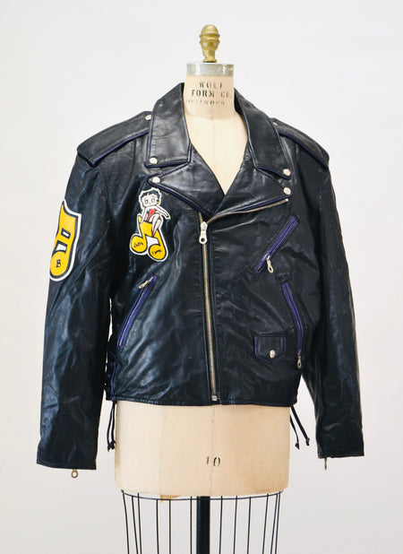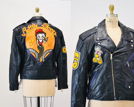 Quick Shop Vintage Black Leather Motorcycle Jacket Betty Boop by Montana Streetwear// 90s 80s Black Leather Biker Jacket Betty Boop Comic MEDIUM LARGE $640.00 Quick Shop