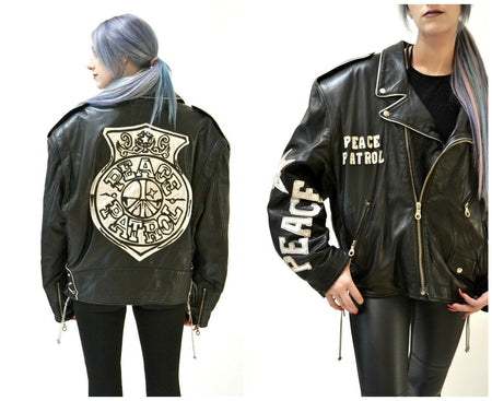 Quick Shop Vintage Black Leather Motorcycle Jacket Mens XL// Vintage Black Leather Biker Jacket Jeff Hamilton Peace Patrol Interscope Records $985.00 Quick Shop