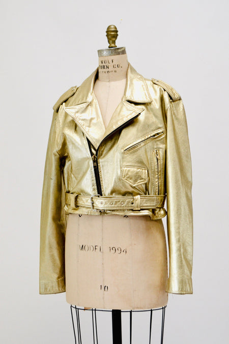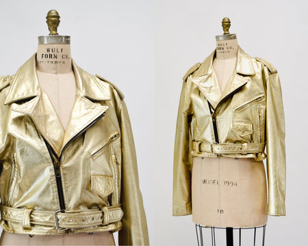 Quick Shop Vintage Gold Leather Jacket Biker Motorcycle Jacket Metallic Gold Leather Large // Gold metallic Leather Jacket Moto By LA ROXX X Large $510.00 Quick Shop