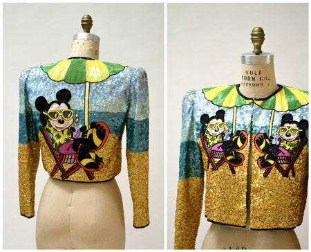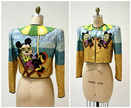 Quick Shop Vintage Jeanette Kastenberg Sequin Jacket with Mickey Mouse Disney Beaded Embroidered Bolero Jacket Size Small J27 $2,505.00 Quick Shop