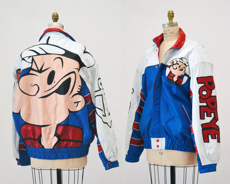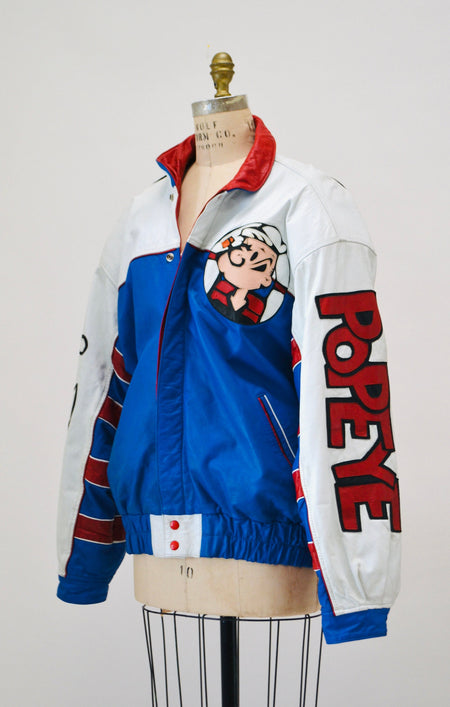Quick Shop Vintage Leather Jacket with Popeye by Maizar// Vintage Leather Bomber Jacket with Popeye Sailor Cartoon Comic Size Medium Large $470.00 Quick Shop