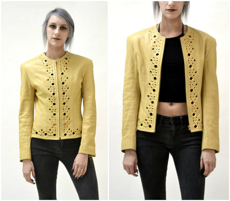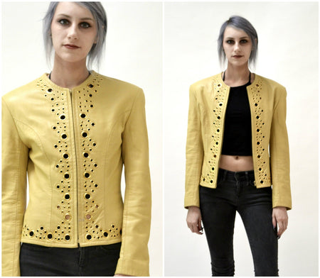 Quick Shop Vintage Leather Jacket by North Beach Michael Hoban Camel Mustard Yellow// Vintage Metallic Gold and Yellow Leather Jacket Size Small $225.00 Quick Shop
