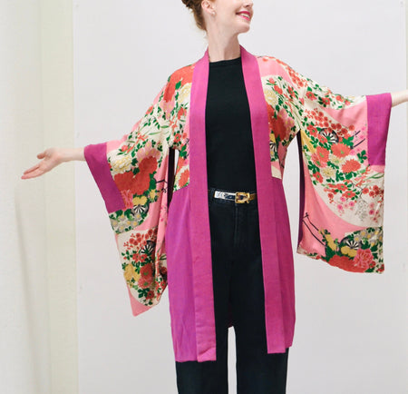 Quick Shop Vintage Kimono Jacket Robe Pink Floral Print Robe Small Medium Large // Vintage Kimono Robe Pink Japan Japanese Traditional Kimono Costume $180.00 Quick Shop