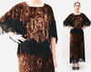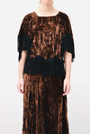Home/Collections/Dresses/70s AMAZING Vintage Brown Crushed Velvet Fringe Top and Skirt By David Silverman Made in England Fringe 70s Festival Boho Top Skirt Dress