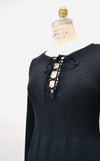 Home/Collections/Dresses/70s Vintage Black Sweater Maxi Dress Lace up Tie Dress // 70s vintage Black long Dress Vintage Black Maxi Long Sleeve Dress ruffle sleeves