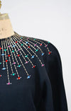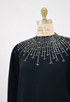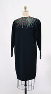 Home/Collections/Dresses/80s 90s Vintage Black St John Dress Metallic Rhinestone Knit Dress St John Evening// Black Rhinestone Party Sweater Knit Dress Medium Large
