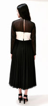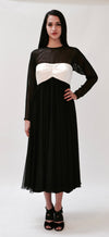 Home/Collections/Dresses/80s 90s Vintage Black white Evening Gown Dress Black White Party Dress Chiffon Long Sleeves Small Medium Empire Waistline Dress
