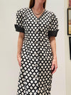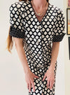 Home/Collections/Dresses/80s 90s Vintage Black White Silk Dress Neiman Marcus// Vintage Silk Shirt Dress Black White Polka Dot Party Silk Conservative Dress Medium