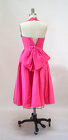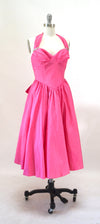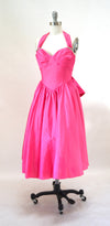Amazing 80s 90s Dress features: * Constructed in pink taffeta * Fit bodice with boning for structure * Halter neck with rhinestone details * Built in crinoline skirt for volume * Back Zip closure * Absolutely fun dress!! by Flirtations Size 7/8, fits more like a XS Small (shown on a size 0/2 form) Good vintage condition ***Measurements*** Bust 31” Waist 26” Hips Full Length from top edge 44” All measurements are given in full. Visit the shop https://www.etsy.com/shop/Hookedonhoney ** twitter | hookedonhoney ** pinterest | hookedonhoney ** instagam | hookedonhoneyvintage