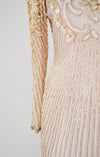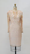 * Gorgeous pink/peach silk cocktail dress fully embellished with off white pearls, silver seed beads and sequins