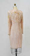 80s 90s Vintage Pink Peach Beaded Sequin Dress Small Medium // 80s 90s Glam Vintage Metallic Sequin Pink Cocktail Wedding Party Dress