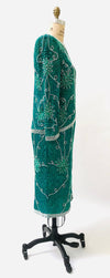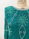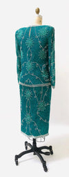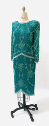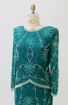 Home/Collections/Dresses/80s 90s Vintage Sequin Top Skirt Dress Set Beaded Skirt Top Dress Medium Blue Green Teal 80s 90s Party Dynasty Flapper Costume