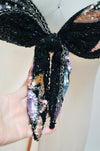 * Black beaded strapless bodice with gorgeous floral pattern with beautiful framing along the bust