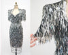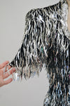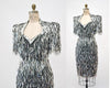 80s 90s Chic Vintage Silver beaded and sequin Fringe dress features: