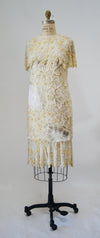 Home/Collections/Dresses/80s 90s Vintage White Beaded Party Dress Dress Small // Vintage Cocktail Wedding Dress White Beaded Flapper White Beaded Party Dress