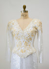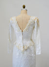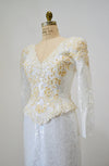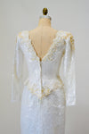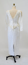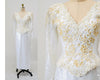 Home/Collections/Dresses/80s 90s Vintage White Lace Sequin Wedding Dress Vintage Conservative Wedding Dress SMALL Medium // Long Sleeve Vintage White Sequin Dress