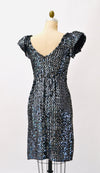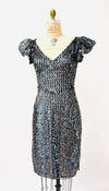 Home/Collections/Dresses/80s Glam Sequin Dress Silver Black Medium Large Body Con Knit Dress // 80s Prom Party Vintage Metallic Sequin Dress Drag Queen Pageant