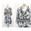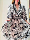 80s Party Ruffle Dress Black White Floral Print Ruffle Peasant Dress Medium Dress Diane Freis inspired 80s 90s Ruffle Summer Party Dress