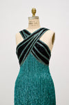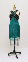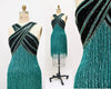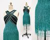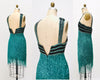 Home/Collections/Dresses/80s Vintage Bob Mackie Blue Green Beaded Fringe Dress Vintage Green Metallic Dress Small // Beaded Fringe Dress Flapper Inspired Cher Dress