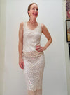 Home/Collections/Dresses/90s 00s Y2k Vintage White Gold Cache Crochet Sequin Club Party Beach Wedding Skirt and top Sheer Beach Dress Small Medium White Gold Dress