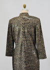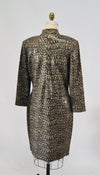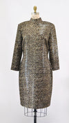Home/Collections/Dresses/90s Vintage Animal Print St John Dress Metallic Knit Dress St John // Animal Print Metallic Party Dress Sweater Knit Dress 12 Medium Large