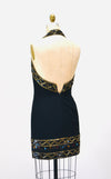 90s Vintage Black Halter Dress Sequin Beaded Metallic Halter Neck Cocktail Party Dress// 90s Black Metallic Sequin Dress Small Medium