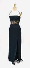 Super gorgeous halter neck dress Features: * Constructed woven Poly with sheer mesh torso * Halter neckline * back neck tie * Back zip closure * Absolutely stunning By Nahnah Collection Size 8 Fits like a small/medium **MEASUREMENTS** Bust 34" Waist 28" Hip 40" Length 59" All measurements are given in full Visit the shop ** Tik Tok | hookedonhoneyvintage ** Instagram | hookedonhoneyvintage