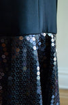 Super Chic 90s Sequin dress by iconic designer Nicole Miller. * Top tank style with drop waist flouncy skirt * Button up closure on top * Fully sequined skirt portion * super cute, timeless dress!!! We love!! Brand Nicole Miller Size 8 fits like a small/medium Rayon/triacetate body and poly lining Lovely Vintage condition Length from top of strap 36" Bust 35” Waist 29" Hip 38" All measurements are given in full. Visit the shop https://www.etsy.com/shop/Hookedonhoney ** twitter | hookedonhoney ** pinterest | hookedonhoney