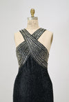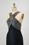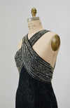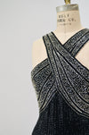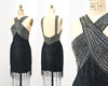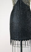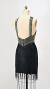 Home/Collections/Dresses/90s Vintage Black Silver Beaded Fringe Showgirl Dress Small Medium // 90s Black Silver Beaded Tank Dress Party Fringe Dress Flapper Dress
