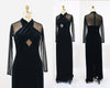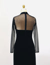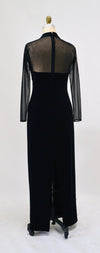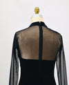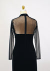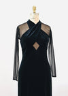 Home/Collections/Dresses/90s Vintage Black Velvet Prom Dress Illusion Dress Medium// Black Body Con 90s Prom Dress Bondage Dress Medium Sheer Sleeve long Black Dress