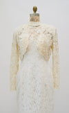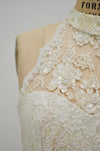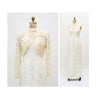 90s Vintage Off White Lace Beaded Party Wedding Gown Beaded Cream White Lace Jacket XS SMALL// Vintage Sequin Lace Wedding Dress Halter Neck