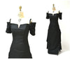 90s Vintage Prom Bridesmaid Dress Black Medium Large Long Off the Shoulders Black Evening Gown