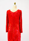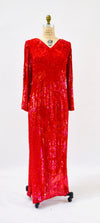 90s Vintage Red Sequin Beaded Dress Evening Gown Medium Large// 80s 90s Glam Red Sequin Long Sleeve Dress Beauty Pageant Showgirl Gown