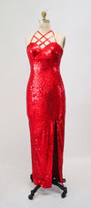 Home/Collections/Dresses/90s Vintage Red Sequin Party Dress Small// Vintage Red Sequin Prom Party Evening Gown Dress Small Pageant Jessica Rabbit Party Dress
