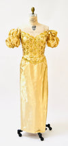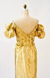 Amazing 80s Gold Metallic Dress Gown by Famous designer Mike Benet, features: