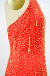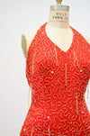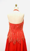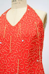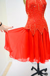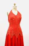 Stunning 80s 90s Vintage Red Beaded Dress Medium Large// 80s 90s Red Beaded Fringe Pageant Dress Halter Neck Showgirl Red Silk Chiffon Dress