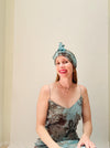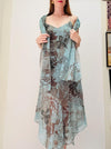 Home/Collections/Dresses/Vintage 00s Y2K Slip Tank Dress Dress Bob Mackie Animal Print Chiffon Dress Medium Summer Wedding Party Slip Dress Blue Brown Beach Dress