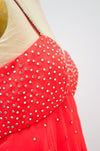 Home/Collections/Dresses/Vintage 70s Red Rhinestone Evening Gown Party Dress Chinese Wedding Dress 1970s Red Ruffle Dress with Rhinestones Empire Waist