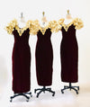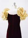 Stunning vintage 80s velvet evening gown features: * Dark Red velvet gown * Metallic gold ruffle shoulder sleeves * Front gold sequin detailing along the front bodice * Back zip closure * Great vintage condition * Stunning show stopper!! By Kitty USA Size Medium, but fits closer to a small Velvet w/ Metallic trim Bust 35” Waist 32" Hip 39" Length 47" All measurements are given in full. **WE HAVE 3 of this dress from the 80s in various sizes, please see our shop for the other listings Visit the shop https://www.etsy.com/shop/Hookedonhoney ** twitter | hookedonhoney ** pinterest | hookedonhoney ** Instagram | hookedonhoneyvintage
