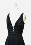 Awesome 90s Party dress!! * Constructed in black woven shell * Satin ribbons around the bust to give a cage/cut out look * fit style fits nicely to curves * Back zip closure Label Andrea Polizzi for Neiman Marcus Size 4 Vintage, fits like a Small medium, shown on a size 4 form Bust 33" Waist 26" Hip 37" Length 34" All measurements are given in full. Good vintage condition with minor wear Visit the shop https://www.etsy.com/shop/Hookedonhoney ** Instagram | hookedonhoneyvintage ** tik tok | hookedonhoneyvintage