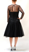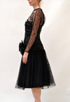 Home/Collections/Dresses/Vintage Black Dress Medium Crinoline Skirt Polka Dot // 80s 90s Black 80s Prom Dress Illusion Dress // Black Party Prom Dress Medium Large