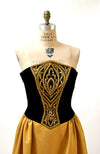 Home/Collections/Dresses/Vintage Bob Mackie Dress Black Strapless Velvet Dress Beaded Sequin Dress Black Yellow Gold Small Medium// 90s Vintage Pageant Party Dress