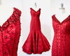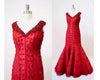 Vintage Red Sequin Beaded Dress Evening Gown dress Escada XS Small// Vintage Couture Red Rhinestone Black Tie Ball Gown Silk Dress Escada XS