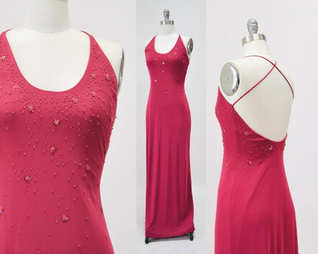 Quick Shop Vintage 00s Y2K Pink Tank Dress Prom Dress Beaded Pink Knit Gown Cami Dress XS Small Pink Long Beaded Dress by Laundry Evening Gown Xs Small $150.00 Quick Shop