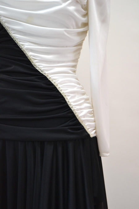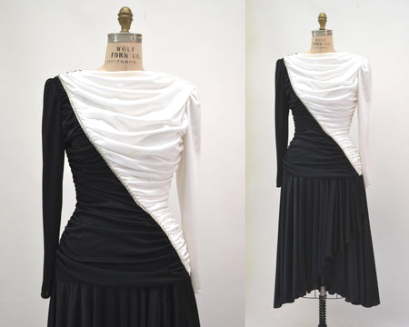 Quick Shop 80s 90s Vintage Knit Black White Color Blocked Draped Dress size Small Medium Rhinestones // 80s Black Disco Dress Party Size Small Medium $130.00 Quick Shop